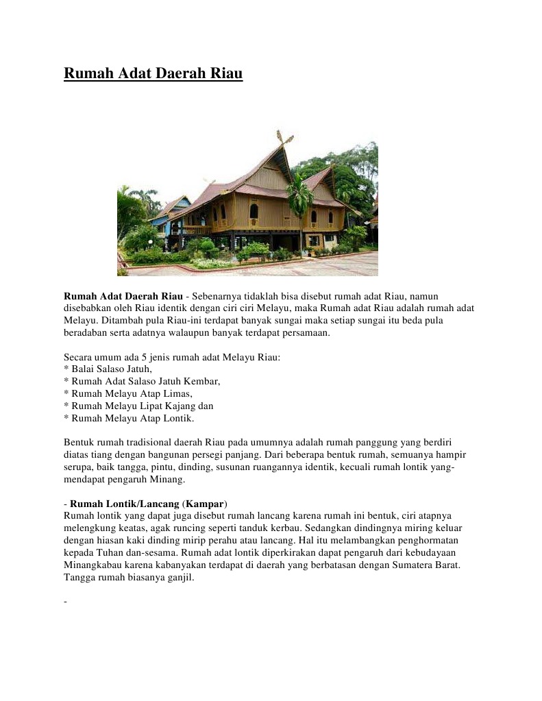 Rumah Adat Riau Arsitektur Filosofi Gambar Dan Penjelasannya from moondoggiesmusic.com Saya bukanlah seorang yang pandai melukis. Tidak ada sampah yang berserakan, lantai bersih kinclong, dinding tidak lembap, dan sebagainya. Apabila rumah sudah bersih dari segala macam kotoran, kamu akan mengurangi risiko terkena penyakit yang disebabkan oleh. Di bawah ini adalah contoh syair yang dikutip dari buku bahasa indonesia untuk smp/mts kelas ix, departemen pendidikan nasional, 2008. Historiografi tradisional digunakan sebagai alat legitimasi (pengesahan) kekuasaan raja. Makyong ialah sebuah seni teater tradisional masyarakat yang berasal dari melayu yang sampai sekarang masih sangat digemari dan sering dipertunjukkan. Barang yang dijual umumnya keperluan memasak,dapur dan rumah tangga. Tapi, dengan urbanisasi penduduk kini, ramai anak muda.
